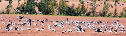 KELBRA/HERINGEN/MZ. Um die zehntausend Kraniche zählen die Ornithologen in dieser Jahreszeit beinahe täglich am Helmestausee in Kelbra. Energie für ihren Weiterflug holen sich die Vögel auf abgeernteten Mais- und Getreidefeldern. Dort finden sie in ausgefallenen Körnern ihre Nahrung. Um die 200 bis 300 Gramm frisst ein Kranich täglich. Doch auch frisch bestellte Felder finden die geschützten Tiere anziehend. Ein Fakt, den die Bauern nur ungern sehen. Frank Kolditz, Geschäftsführer der Landwirtschafts GmbH Kelbra, spricht von einem enormen Schaden für sein Unternehmen. Insgesamt 1 500 Hektar Fläche bewirtschaftet die Firma nach eigenen Angaben in der Region. "Die Vögel fliegen bis Sittendorf und fressen die Herbstaussaat", schimpft er. Bloß gegen die Lobby der Vogelfreude habe man keine Chance. Auf der benachbarten Thüringer Seite des Stausees versuchen die Bauern deshalb, die Vögel mit so genannten Ablenkfütterungen von den Saaten fern zuhalten. Sie stellen Flächen zur Verfügung, auf denen Körner ausgebracht werden. Knapp 15 000 Euro gibt der Kulturbund für Europa in diesem Jahr den Bauern im Landkreis Nordhausen als Aufwandsentschädigung. Die Agrargenossenschaft Heringen beteiligt sich an den Fütterungen. "Die Tiere richten aber trotzdem immensen Schaden auf den Feldern an", weiß Helmut Enzenberg von der Agrargenossenschaft. Denn das eigentliche Problem sieht der Landwirt in der Masse der Tiere und bringt es auf eine einfache Formel: Wenn immer mehr Tiere kommen, benötigen die auch immer mehr Futter. Die Agrargenossenschaft ist mittlerweile dazu übergegangen, die Flächen, die unmittelbar am Gewässer liegen, eher zu bestellen. "Das Getreide keimt so bereits, wenn die ersten Vögel auftauchen", sagt Enzenberg. Doch auch davon ließen sich die Kraniche nicht beeindrucken. Sie suchten sich immer entferntere Felder. Die Agrarproduktion Goldene Aue in Görsbach macht deshalb in diesem Herbst erstmals bei den Ablenkfütterungen nicht mit. Denn für Geschäftsführer Wolfgang Benkstein ist das Vogel-Vesper ein zweischneidiges Schwert: "Wir dachten viele Jahre, wir tun etwas Gutes. Doch mittlerweile sind wir der Meinung, dass wir mit dem Futterangebot immer mehr Kraniche anlocken und das Problem vergrößern. Dazu kommt, dass die Tiere auf der Futterfläche im vergangenen Herbst einen Totalschaden angerichtet haben. Und für den Ausfall müssen wir allein aufkommen", so Benkstein. Tatsächlich hat sich der Stausee in den vergangenen Jahren zu einem der wichtigsten Kurzzeitrastplätze für Kraniche in Deutschland entwickelt. Vogelkundler zählen jetzt im November Spitzenwerte von bis zu 40 000 Tieren täglich. Über die genauen Ursachen sind sich die Ornithologen noch nicht ganz sicher. Doch in den zusätzlichen Fütterungen sieht Kranichforscher Professor Hartwig Prange aus Halle keinen Grund. "Neben den Vögeln aus Skandinavien kommen immer mehr Kraniche aus Polen und dem Balkan zu uns. Die haben gemerkt, dass die Strecke kürzer und sicherer ist. Auf dem Balkan werden Kraniche oft abgeschossen", sagte Prange. Zudem hätten Deutschland und auch Frankreich, wohin die Kraniche weiterziehen, viele Maisfelder. 31.10.2010