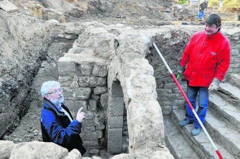 13 Stufen in die Vergangenheit- Bauhistoriker Schmitt sieht in Mauerresten auf dem Hof des alten Schlosses Hinweise auf die Wettiner. Burgreste offenbar älter als angenommen -